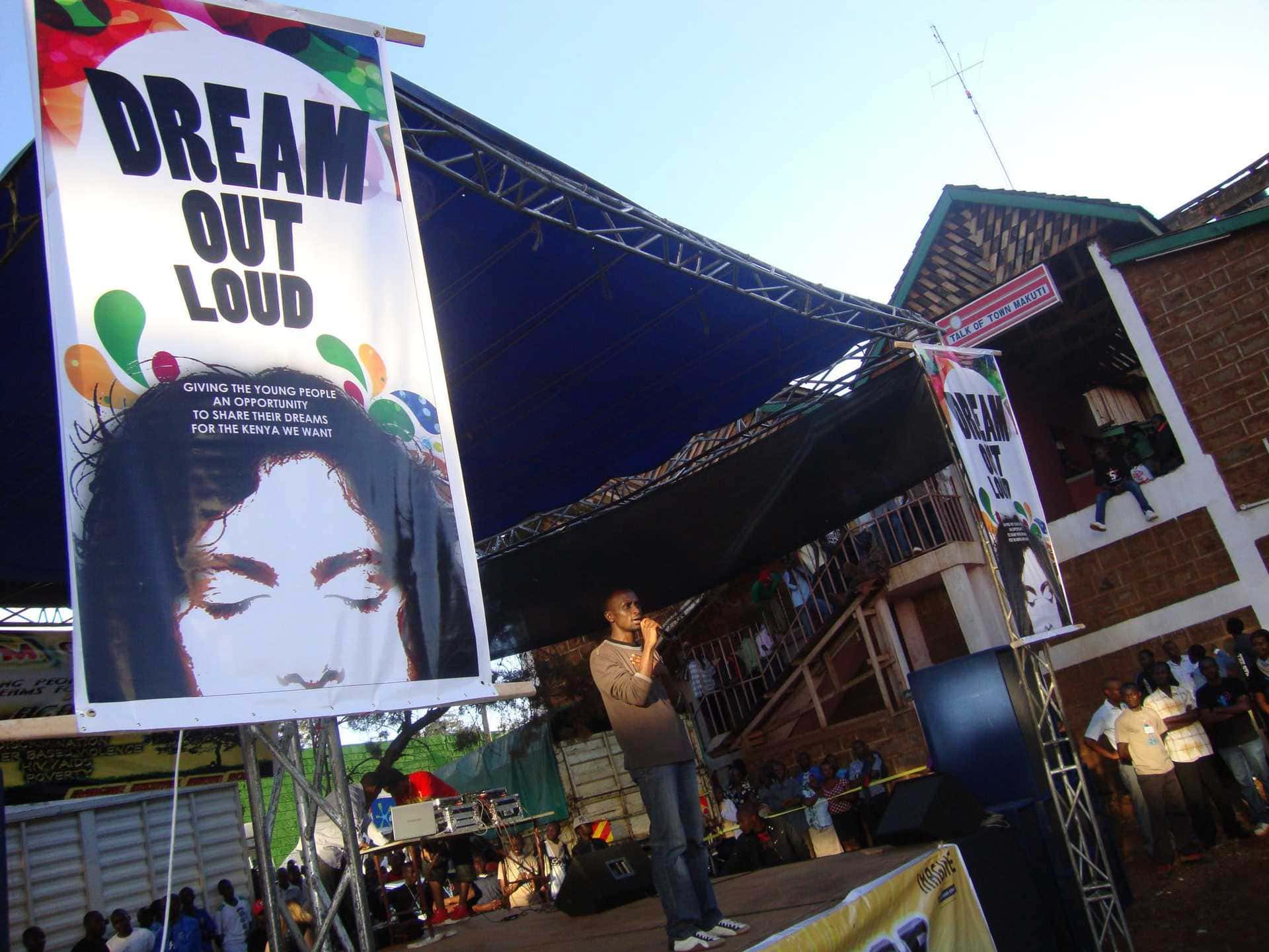 Thanks to the public platform offered by imagine Kenya, various concrete demands from the young people have already been implemented: For example, a music studio is currently being set up to provide more support for the local music scene. The origin of this wish was the 2011 festival: with the motto “Dream out loud”, the young people asked the audience to express their wishes and record them on a poster.