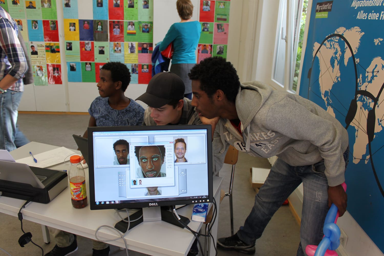 terre des hommes schweiz invited visitors to morphing in a classroom at the center, which was met with great interest. Anyone who wanted to could have their face merged with the face of a person from our project countries. At times, the rush was so great that the terre des hommes schweiz team could barely keep up with taking photos.